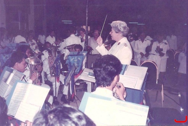 General Eva Burrows conducts the band
