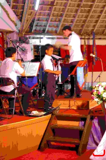 Cornet player Ganda Siaga (then just 11 years old) plays his solo during the concert.