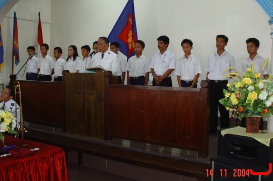 You have to be a full member of the Salvation Army to wear the uniform and participate in BBJ activities. So to make things right, a large number of band members were sworn in as soldiers on the Sunday morning just before the concert.