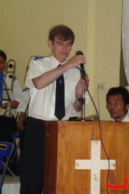 Introducing the band at Simandaolo. November - a former BBJ member now living in Nias - looks on.