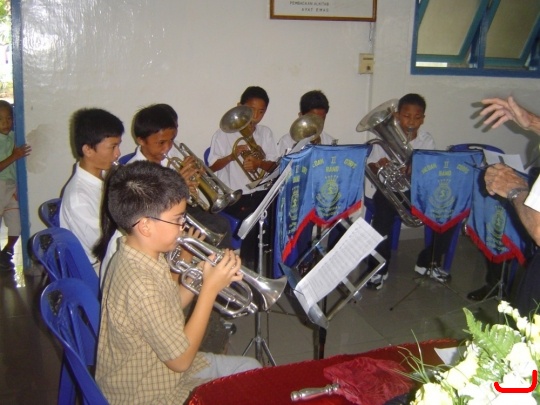 My son Peter (foreground) is playing the cornet.