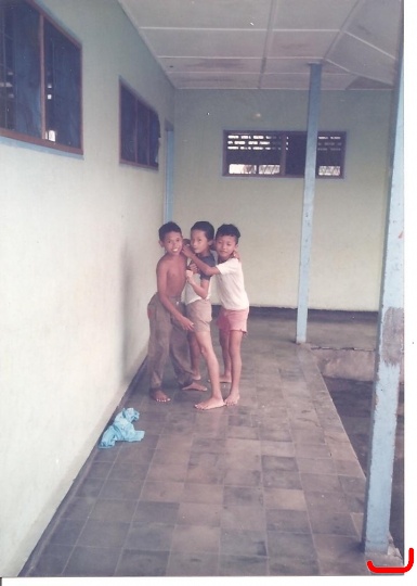 This picture was taken outside the dormitories. There is a small space nearby where the younger boys play.